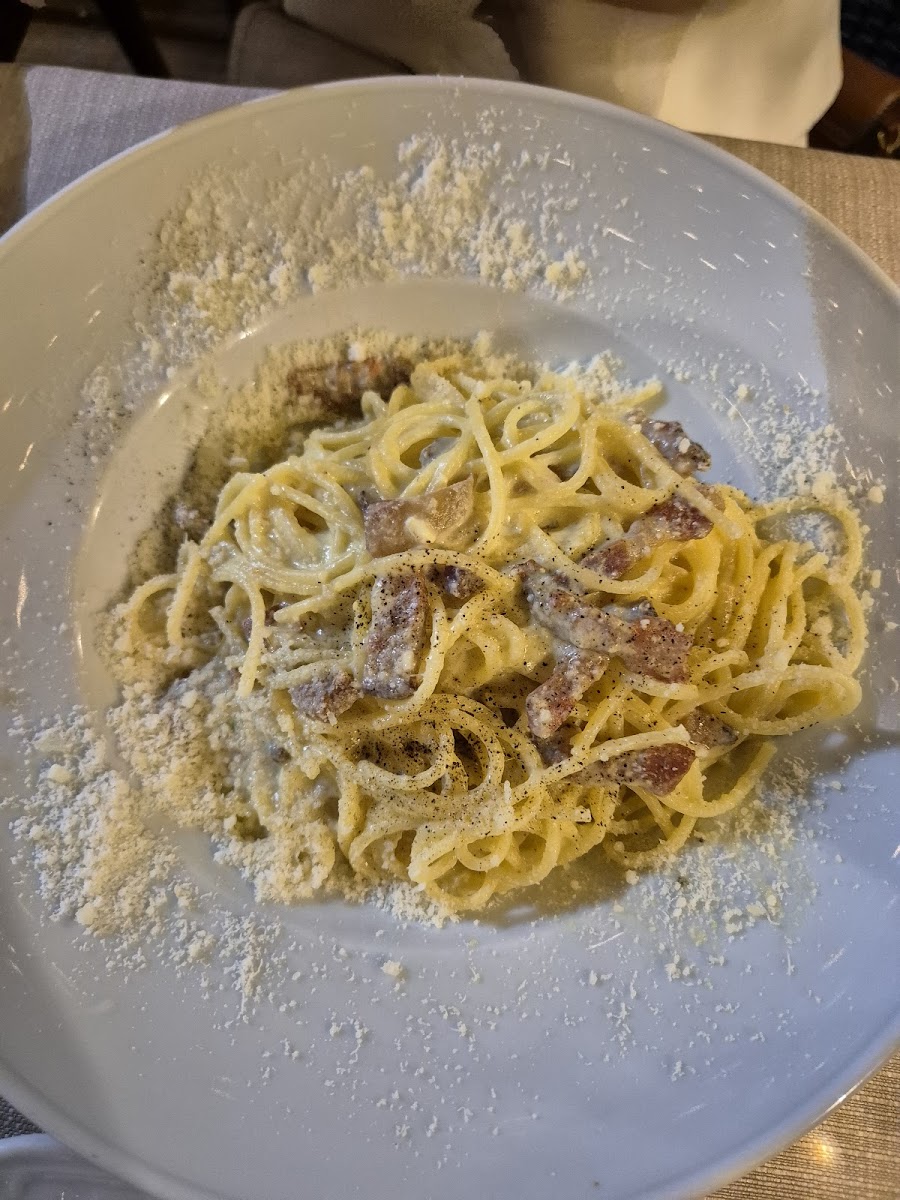 Fantastic resturant, We went two times while we stayed in rome. The service was.fantastic, very welcoming staff and the food was fresh and tasted lovley. First night we had pizza and was delicious and the second night opted for mix grill, grilled squid ,steak and fresh fish all cooked to perfection. The waiter was amazing and made every effort to ensure we where ok and happy. We would highly recommend this resturant for the food and atmosphere.